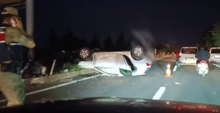 akşam saatlerinde takla attı. Meydana gelen kazada 5 kişi yaralandı.
