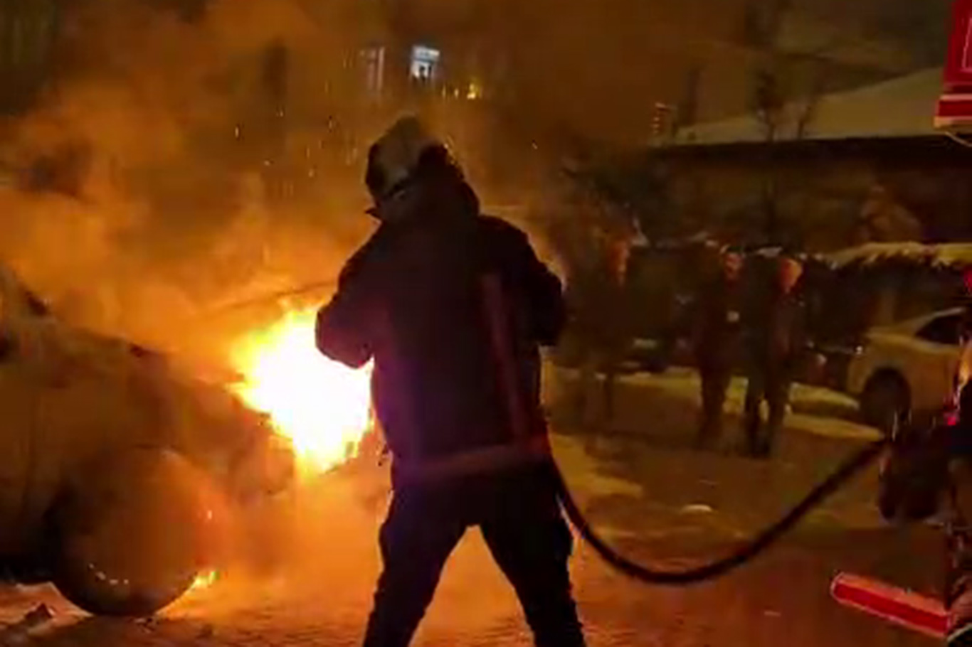 Araç çevresinde bulunan diğer otomobillere alevlerin sıçramaması için araç sahipleri araçlarını, bölgeden uzaklaştırmak için yoğun çaba sarf etti.