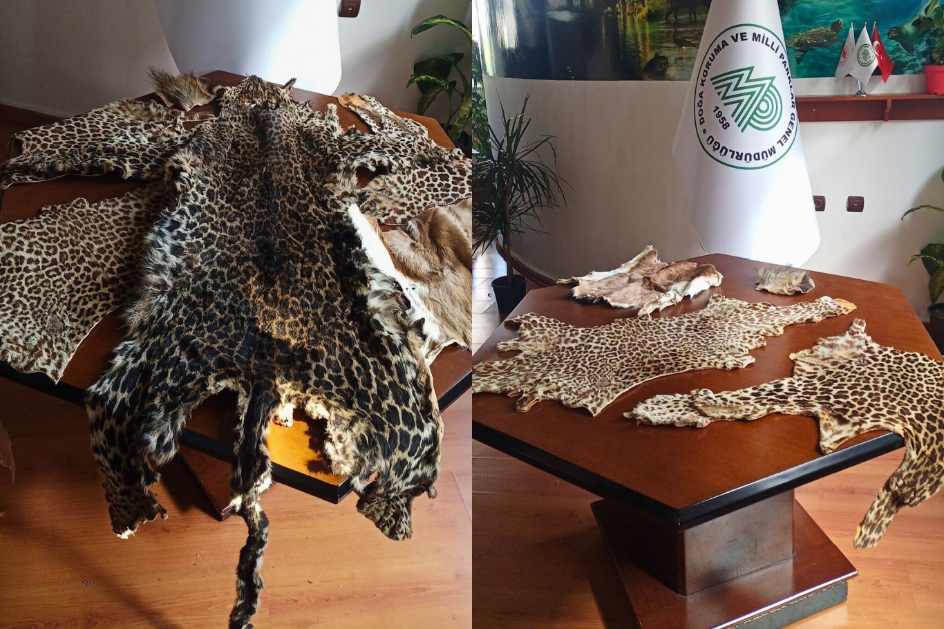 Gümrük muhafaza ekiplerince yapılan kontrollerde, 1 adet bütün leopar postu, 3 parça halinde leopar postu, 2 parça ceylan postu ve 4 adet baykuş gözü ele geçirildi.