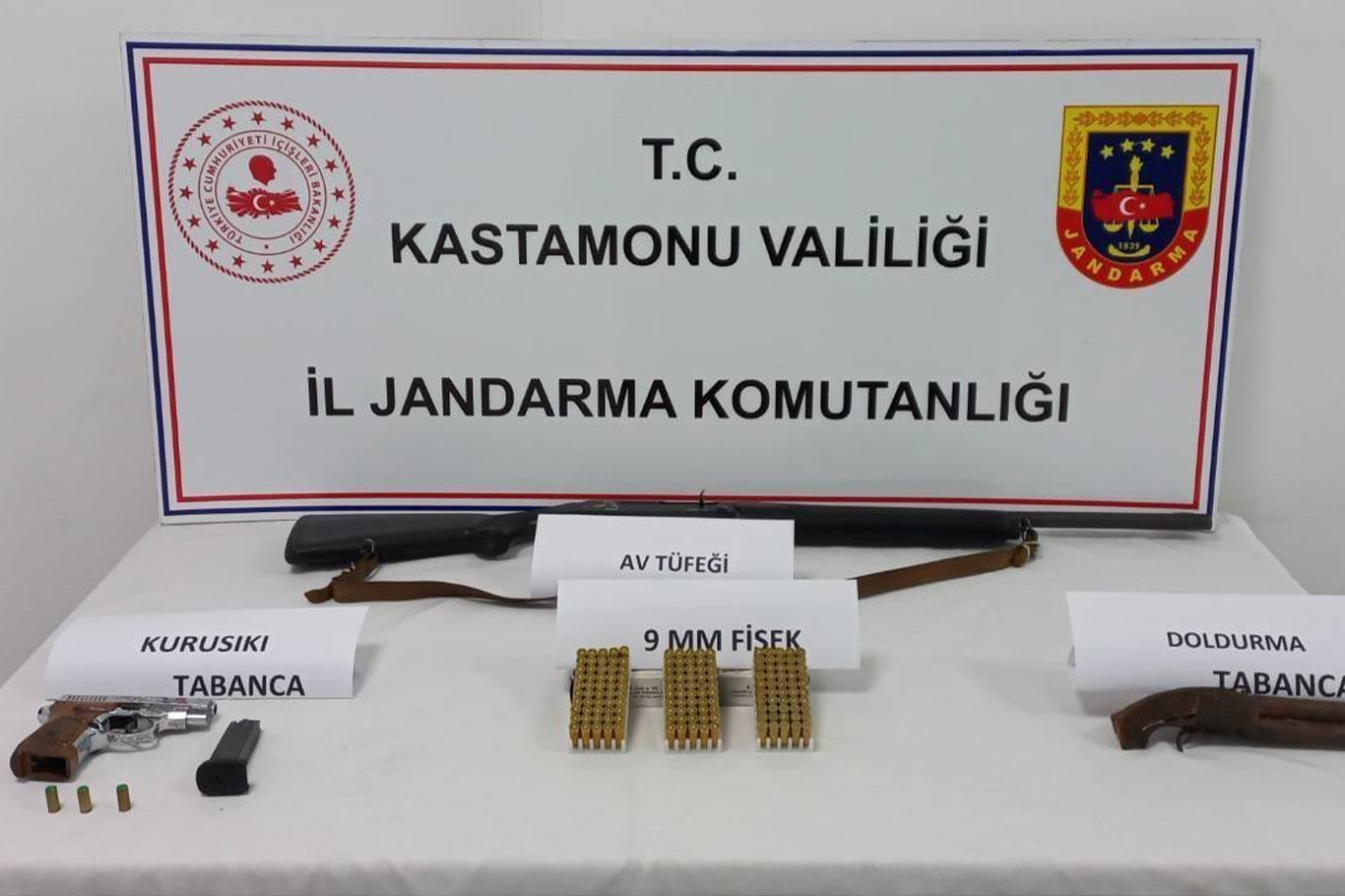 Kastamonu İl Jandarma Komutanlığı, genel güvenliğin kasten tehlikeye sokulması suçuyla mücadele kapsamında yürüttüğü çalışmalar kapsamında üç şüpheliyi yakaladı. Şüpheliler R.K., E.Ş. ve E.E.’nin üst aramalarında çeşitli silahlar ve mühimmat ele geçirildi.