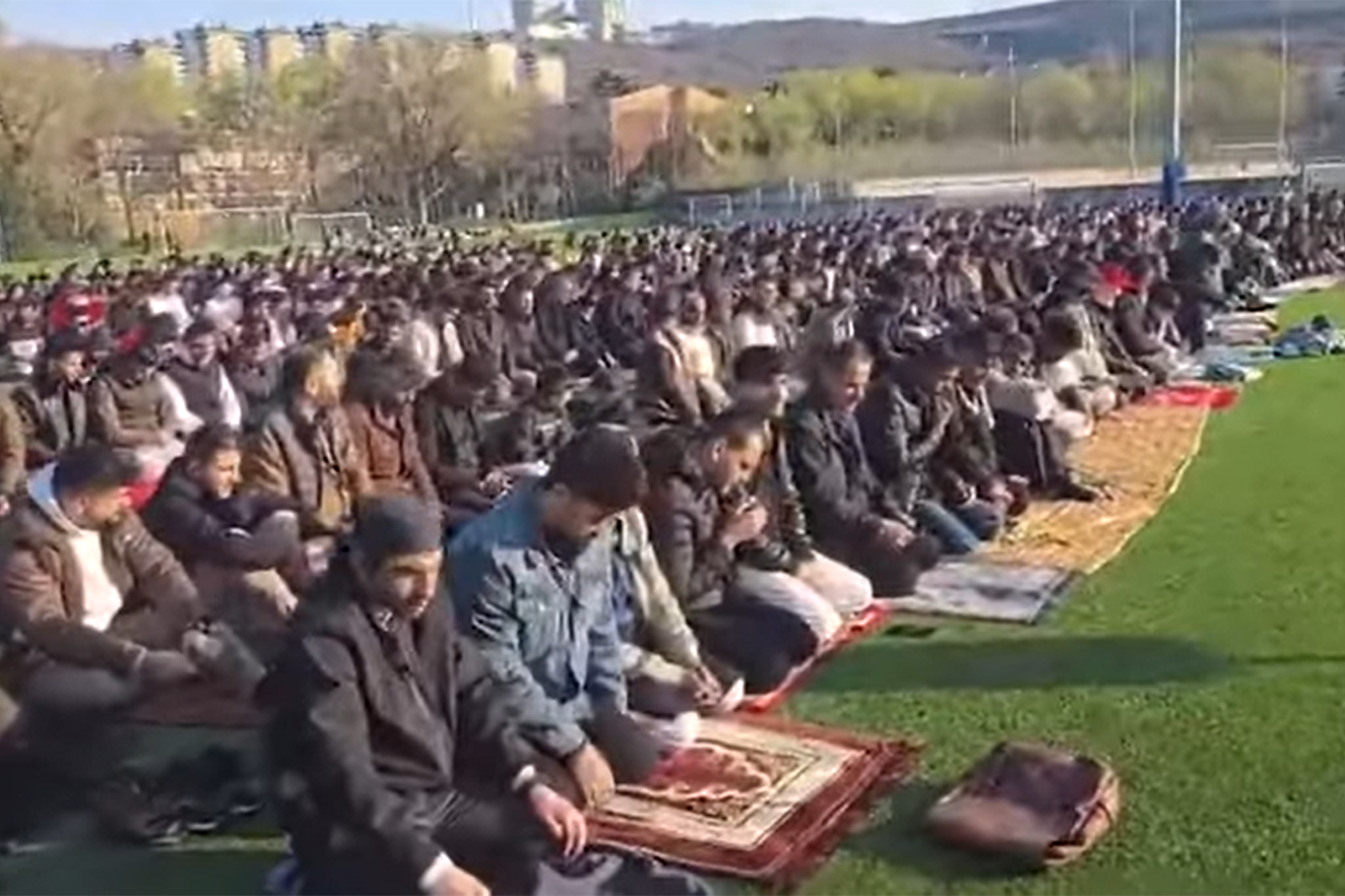 İtalya'nın Trieste kentinde yaşayan muhacir ve gurbetçiler, Ramazan Bayramı'nda büyük bir buluşmaya imza attı. Yoğun katılım nedeniyle bayram namazı camiye sığmayınca futbol sahasında kılındı....