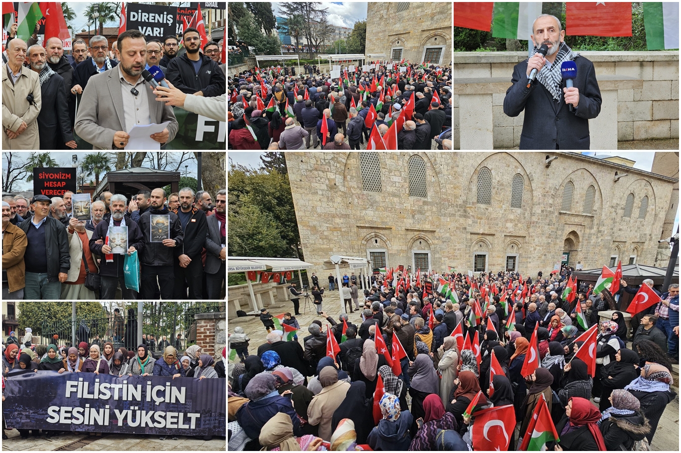 Basın açıklaması Cuma namazına müteakiben Ulu Camii önünde yoğun katılımla gerçekleştirildi.