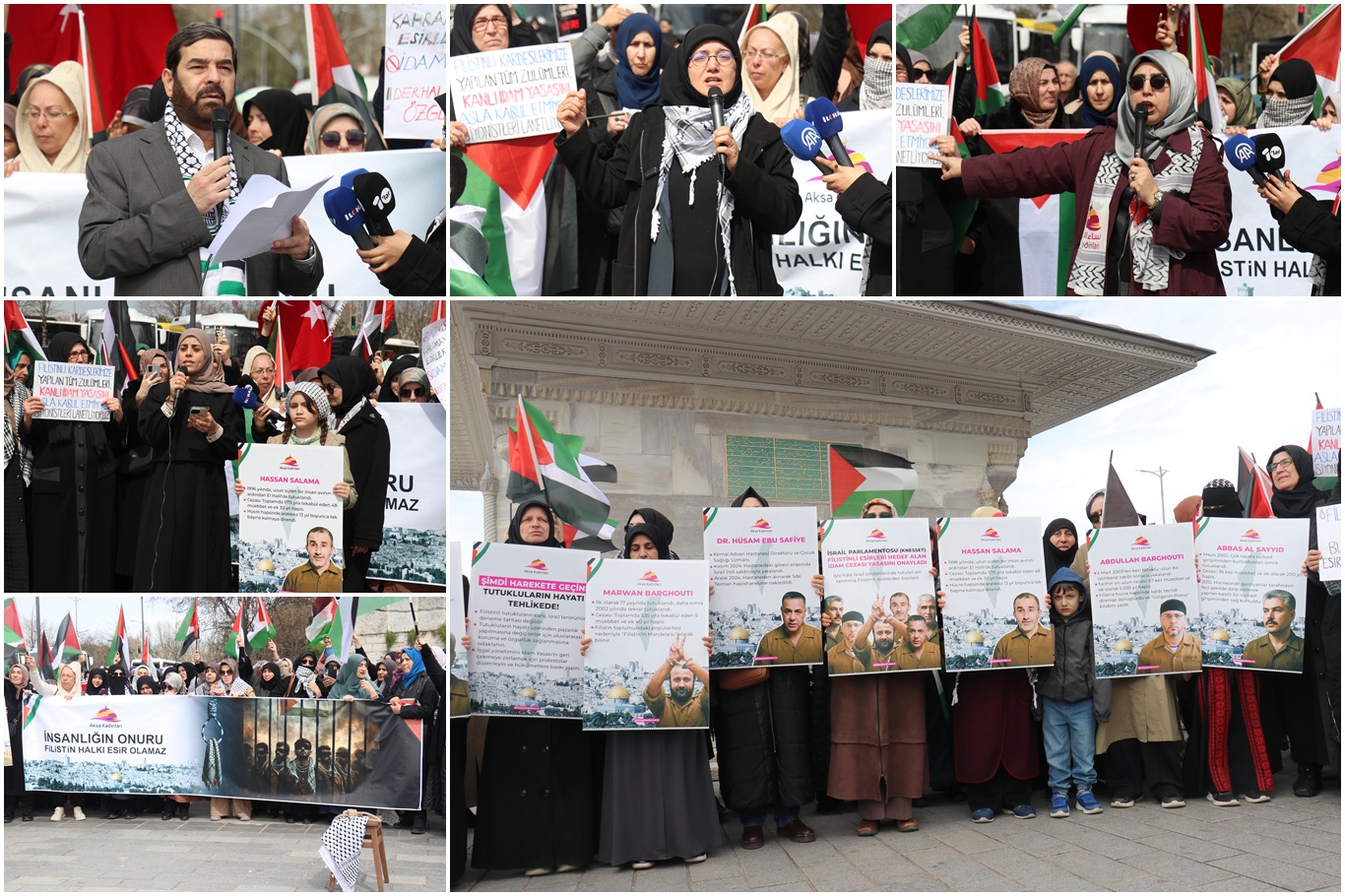 Aksa Kadınları Derneği, siyonist işgal rejiminin Filistinli esirler için aldığı idam kararını telin etmek ve yöneticileri harekete geçirmek amacıyla İstanbul'da bir eylem gerçekleştirdi. Eylemde, esirlerin sesi olmak, siyasileri ve sivil toplum kuruluşlarını harekete geçirmek için herkesin elinden geleni yapması çağrısında bulunuldu....