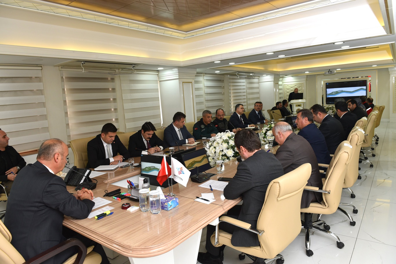 Toplantıya, vali yardımcıları, belediye başkan yardımcıları, ilçe kaymakamı, kurum müdürleri ve ilgili birim temsilcileri katıldı. (İLKHA)