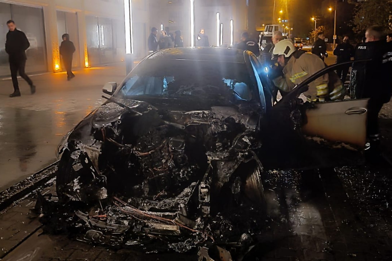Yangın sonucu otomobil yanarak kullanılamaz hale geldi.